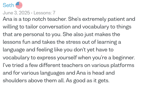 With over eight years of experience teaching Spanish online, I’ve helped students from all over the world turn confusion into confidence when speaking Spanish.